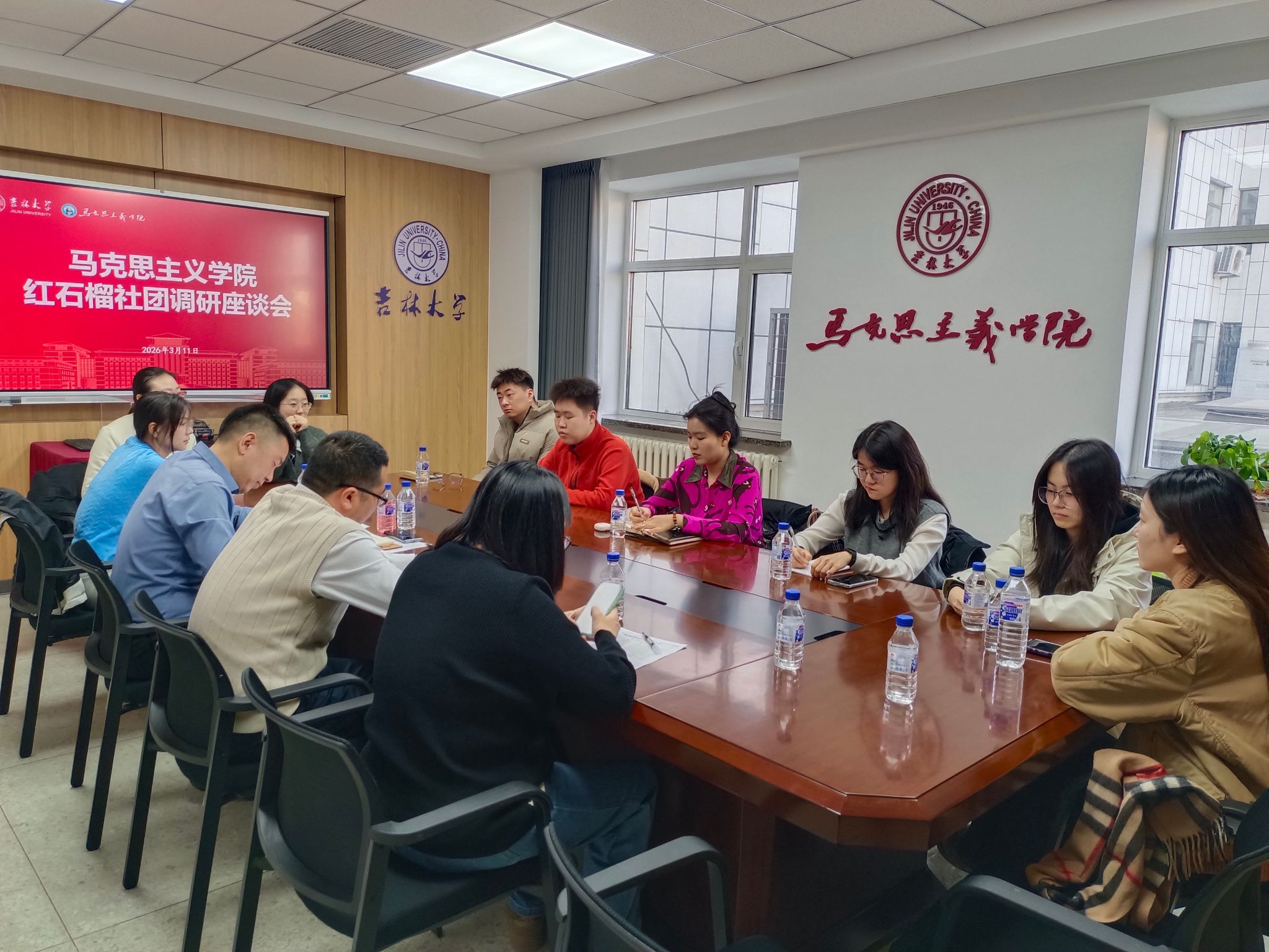 召开了红石榴社团调研座谈会。学院党委副书记兼副院长、纪委书记金光旭主持会议,吉林大学东北民族研究中心副主任、学院教授王成,学院辅导员、团委书记万佳悦以及社团全体成员参加会议。