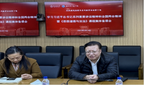李静副院长高度肯定教研室任课教师的教学工作和备课态度,提出学习贯彻习近平总书记系列重要讲话精神和全国两会精神是当前教育系统的重大政治任务。希望任课教师把学习贯彻习近平总书记在全国教育大会上的重要讲话精神、习近平总书记在全国两会期间的重要讲话精神、习近平总书记关于教育的重要论述等贯通起来,认真学、务实学、经常学、融入课堂教学和工作实践。